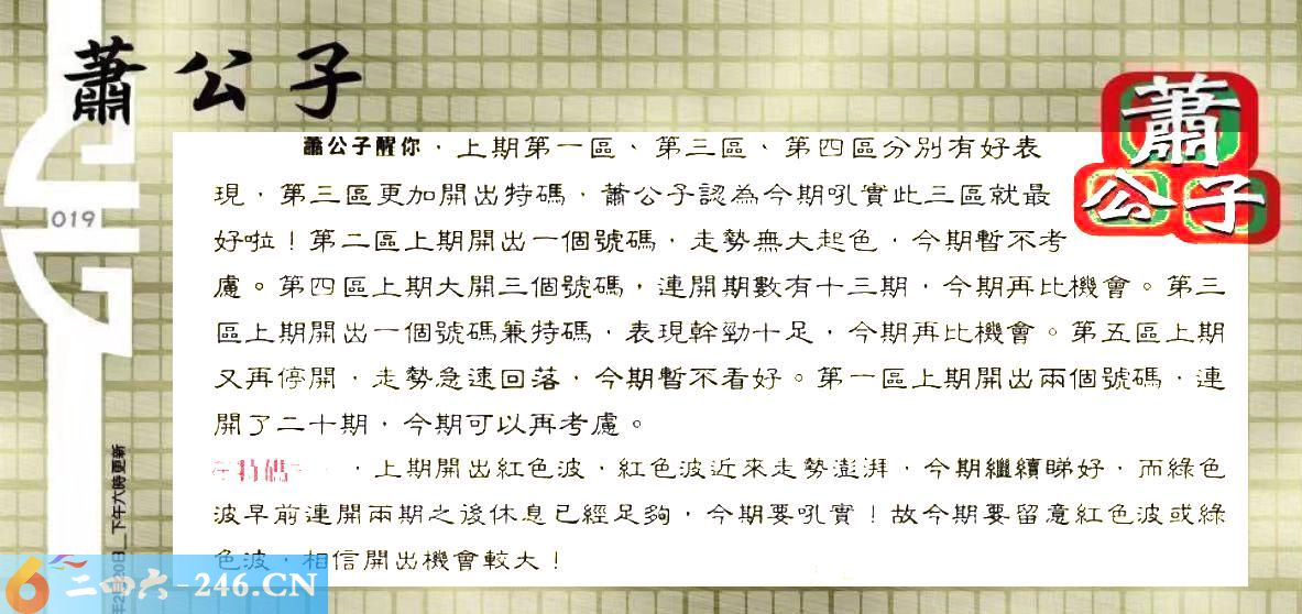 2025019期019期:彩民推荐〖貼信讀者論壇〗