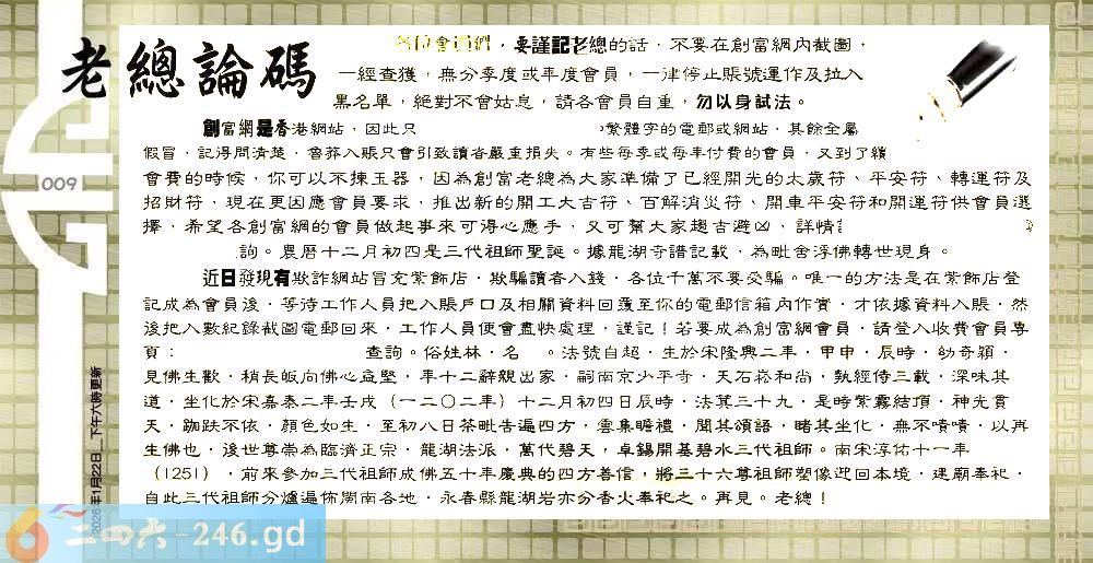 009期:六合皇金句/老总论码/萧公子/林大师/五行夺码/老总信箱截图