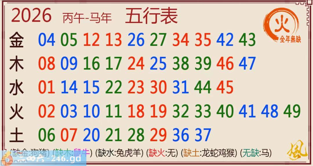马年生肖表( 万二蚊)