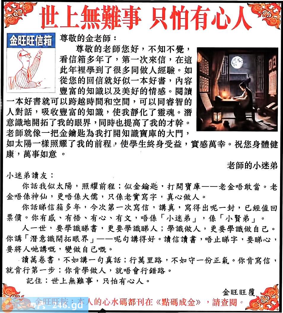 118期:金旺旺信箱彩民推荐→→《世上無難事 只怕有心人》
