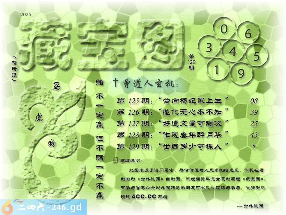 129期藏寶圖 新:世间多少守株人 老:却羡杨朱泣路歧 禁:龙禁:8尾玄機字:《呜》