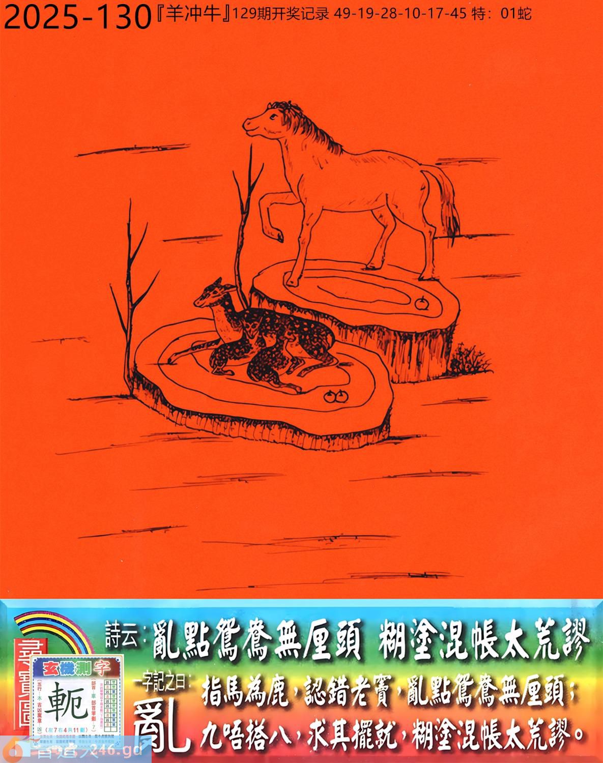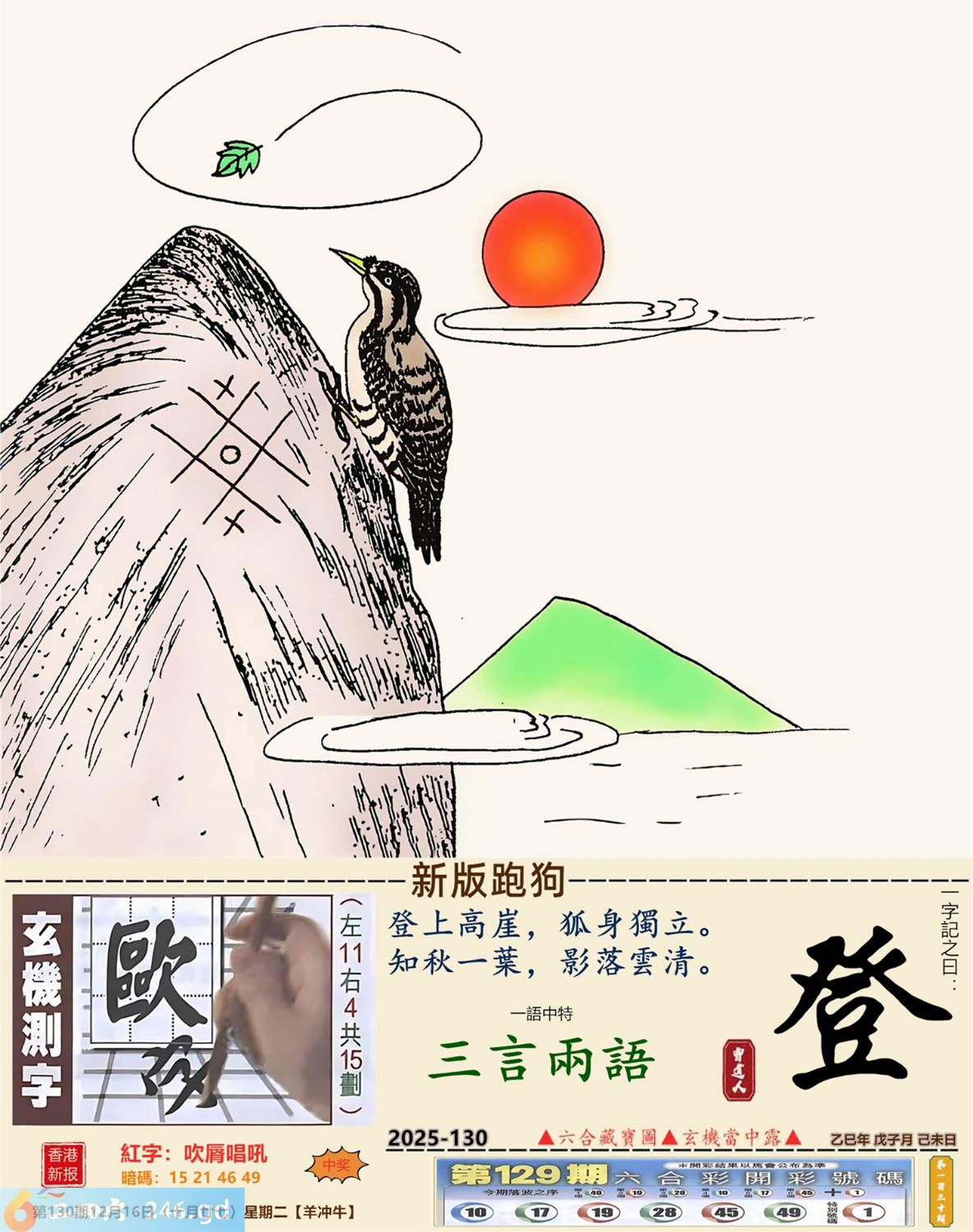2025年12月16日130期牛(癸丑)(天上火) 130期:老版跑狗玄機一字記之曰:【亂】 詩云:亂點鴛鴦無厘頭糊塗混帳太荒謬 日指馬鹿,認錯老竇,亂點鴛鴦無厘頭; 九唔搭八,求其擺就,糊塗混帳太荒謬。 玄機測字:《軛》 密圖詩:一把石頭抛水中 《記》:人生一雙八字眼 特碼大小單雙句:姑娘十八一朵花 今期必中:曹操 130期:特碼歇后語 脑门上开口-----对天说话 130期正版四字梅花诗:胸有成竹。 130期火车头:烧伤龙。诗:龙死马伤,看好三九梦中游。 130期香港第一手欲钱料:一? 130期曾道人说:“牛?” 130期另版四字梅花诗:有苦难言。 130期香港第一手欲钱料:欲钱看西部大开发。 130期曾道人说:“男人三十好动被象征为什么”? 130期:二字經:小氣 130期:中药是特码 130期:智力金壤:四面楚歌 130期:信箱紅字:【吹唇唱吼】 130期:【暗碼:15-21-46-49】 130期:一語中特:【三言兩語】 發財玄機圖:活力敏捷貼心好動圖中明狗藍綠 130期:藏寳圖 新:最是城中闲静处 老:料峭轻寒结晚阴 禁:狗禁:0尾玄机字《贾》 2025年130期【生活幽默】版 〖觀念一致〗 老處女與花花公子聊天,偏偏觀念始終無法溝通。 花花公子耐心地問:"好,我再問你一個問題,當你進到一間有兩張床的房間裏,一張床上躺了一個女人,一張床上躺了一個男人,你會躺哪張床?"老處女不加思索答:"當然是躺女人的那張床!"花花公子得意地説:"你看,我就説我們的觀念總會一致的嘛!"