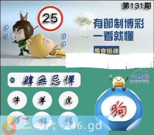 2025年131期正版彩图挂:25 爆:狗 挂牌成语:肆无忌惮 挂牌出肖:牛羊虎鸡猴龙