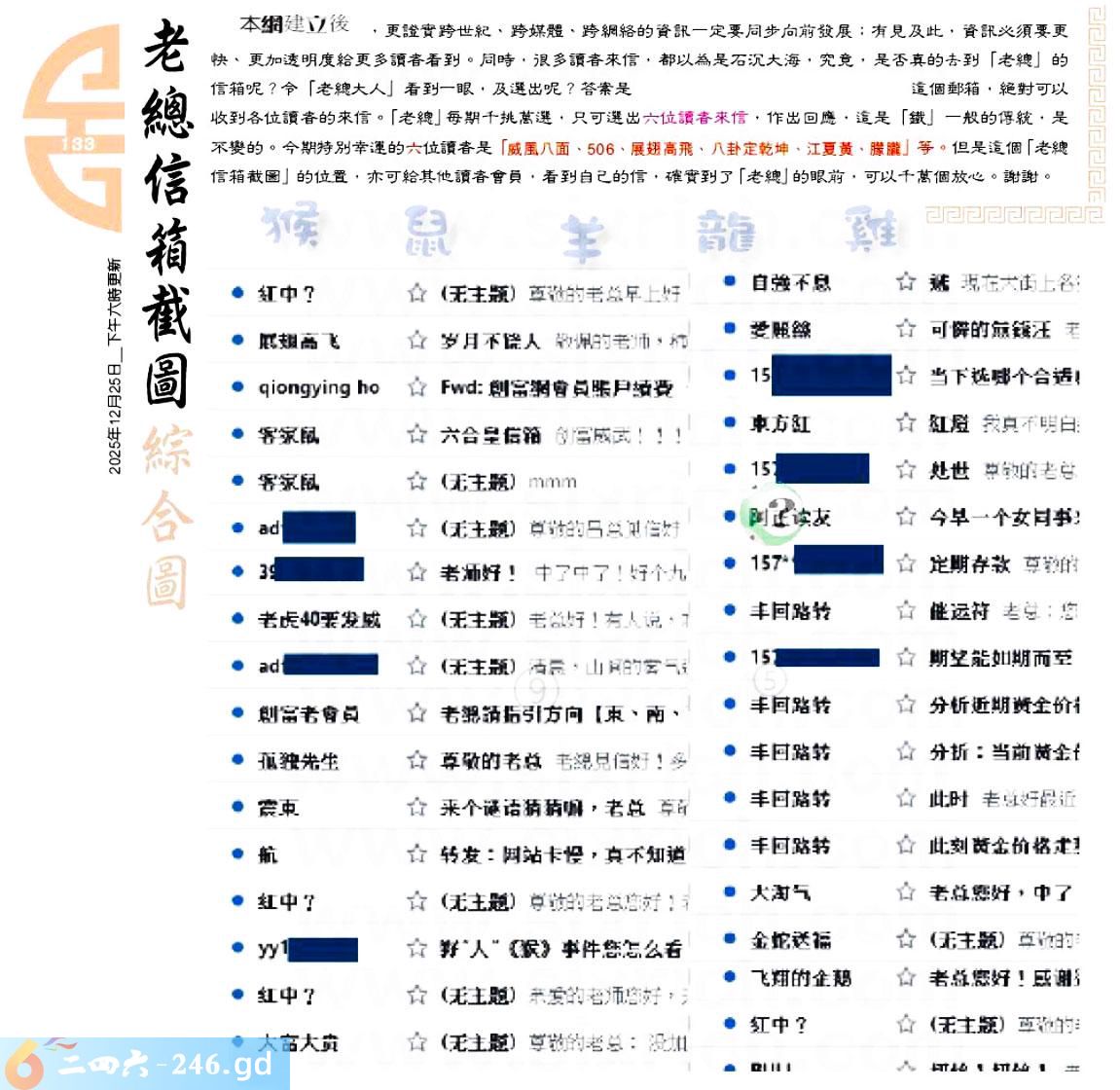 133期:六合皇金句/老总论码/萧公子/林大师/五行夺码/老总信箱截图