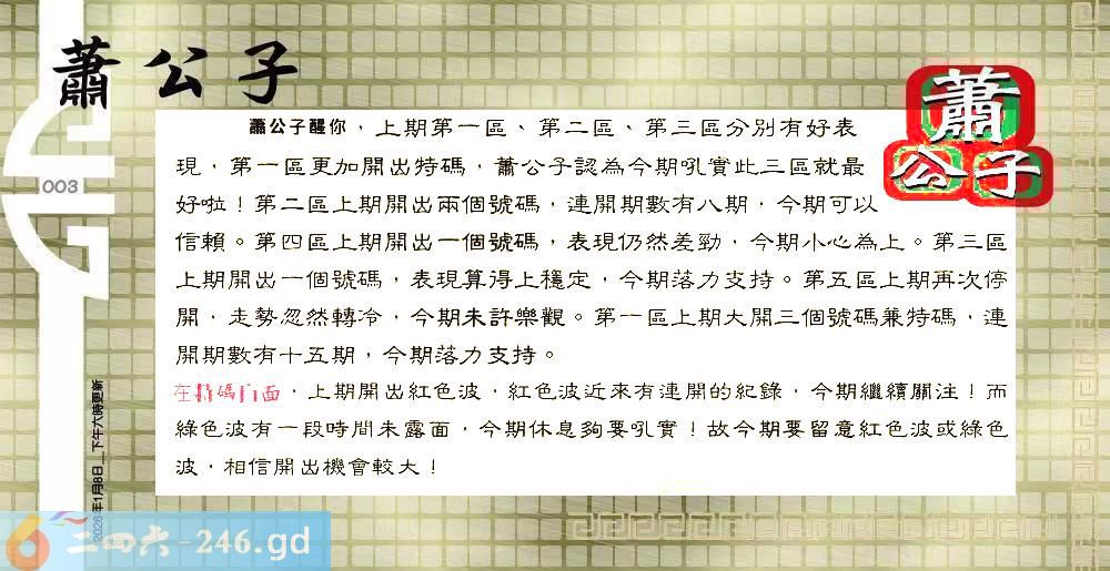 003期:六合皇金句/老总论码/萧公子/林大师/五行夺码/老总信箱截图