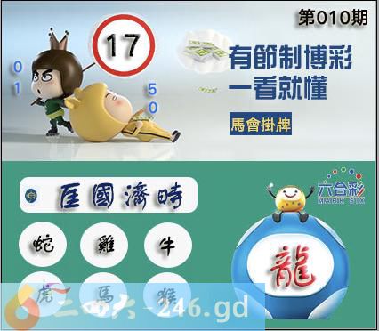 010期正版彩图挂:17 爆:龙 挂牌成语:匡国济时 挂牌出肖:蛇鸡牛虎马猴