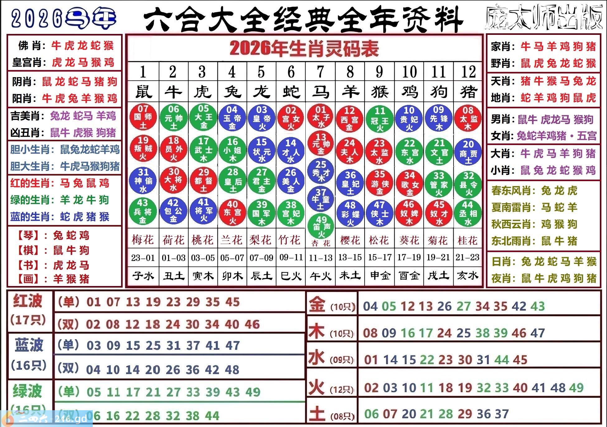 【2026年 超清 】灵码生肖表( 庞太师)
