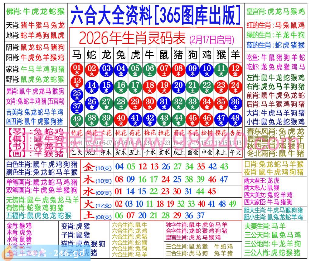 2026年最新生肖表!( 如初见)